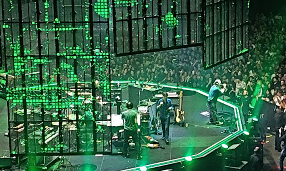 Karma Police: “Karma Police”, um dos hinos do sublime “OK Computer”, é o encerramento que todo show do Radiohead merece. Pelo que vimos nos vídeos dessa música, os telões ao redor do palco, além de se erguerem, também podem girar em seus próprios eixos, mas o efeito é utilizado em apenas uma ou outra música de cada show.